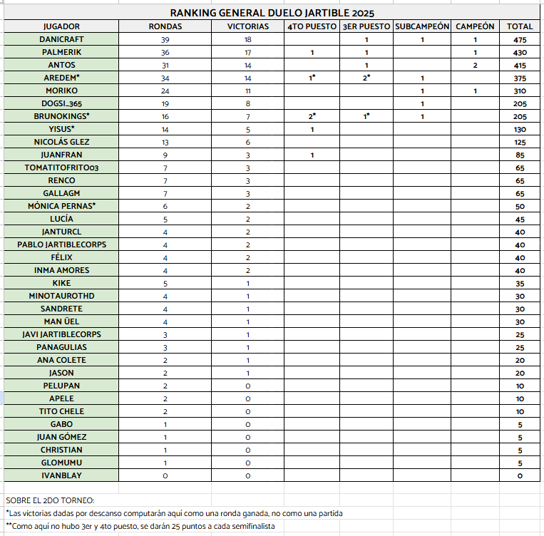 En DUELO JARTIBLE vence el primer jugador que gana dos rondas. Es decir, es al mejor de tres. Y siempre uno contra uno.